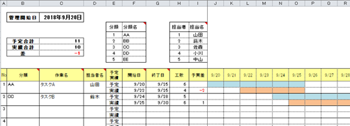 2)工程管理表の作成(作成例)